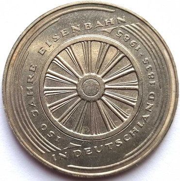 5 марок - 150 лет железной дороге Германии, Германия, 1985 год