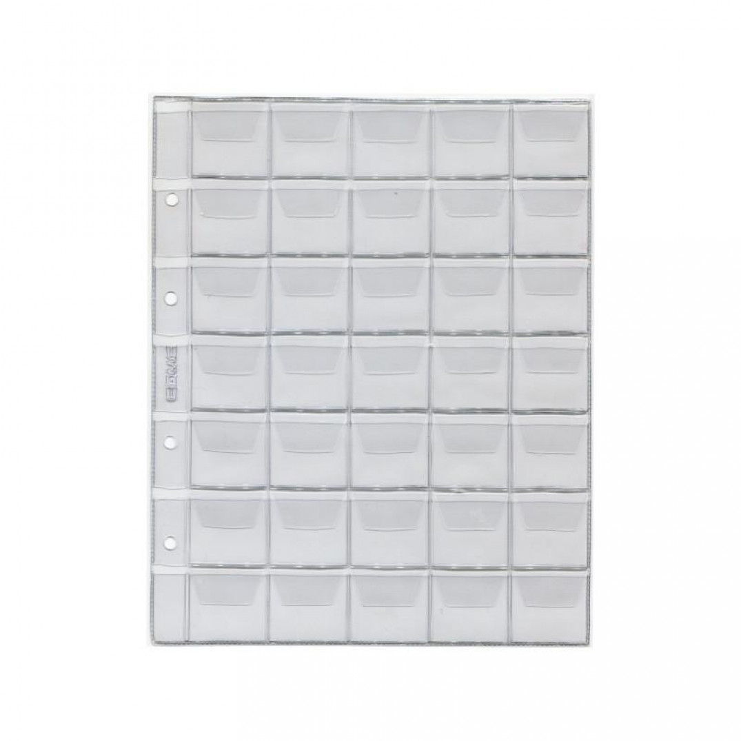 Лист для монет 200х250 мм на 35 ячеек 35х35 мм, с клапанами