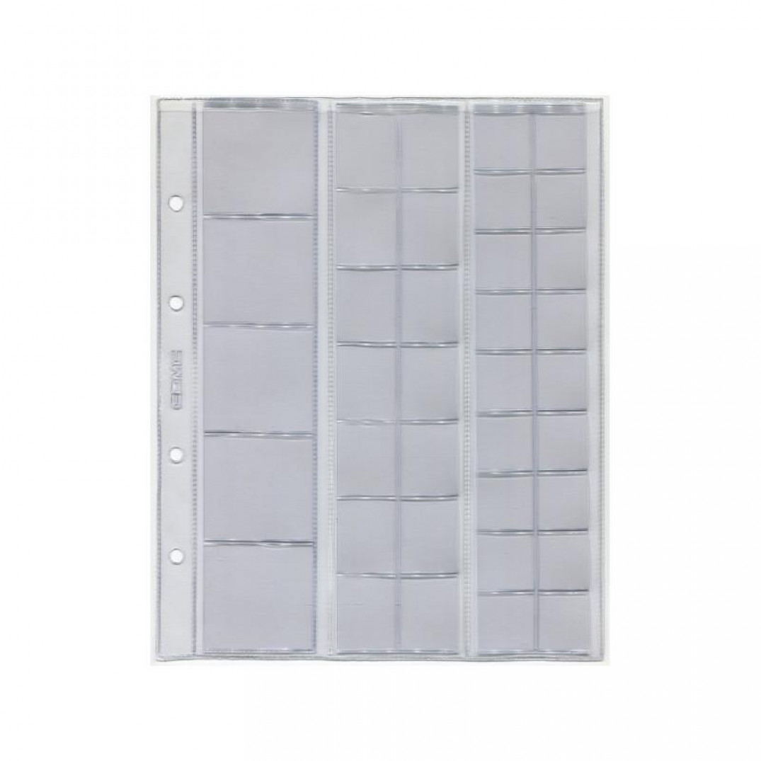 Лист для монет 200х250 мм на 37 ячееек, комбинированный скользящий