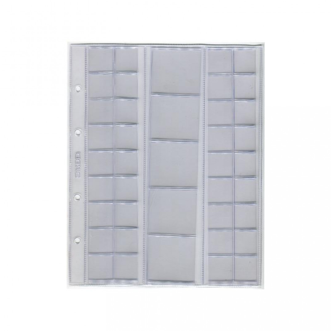 Лист для монет 200х250 мм на 41 ячейку, комбинированный скользящий