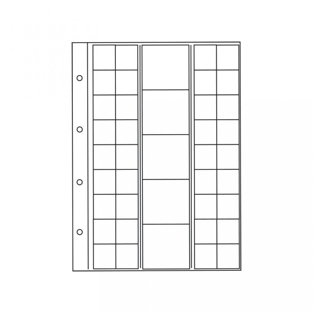 - Описание: Имеет 36 ячеек размером 24х25 мм и 5 ячеек размером 48х46 мм. Подходит в альбомы стандарта "Optima"
