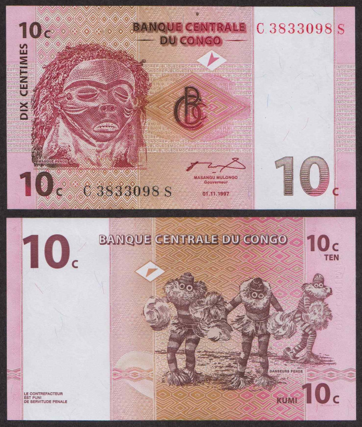 Банкнота 10 сантим - Конго, 1997 год, UNC