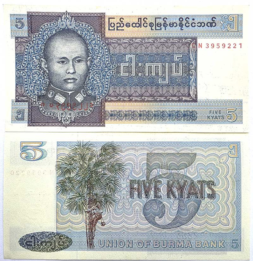 Банкнота 5 кьят - Бирма, 1973 год, UNC