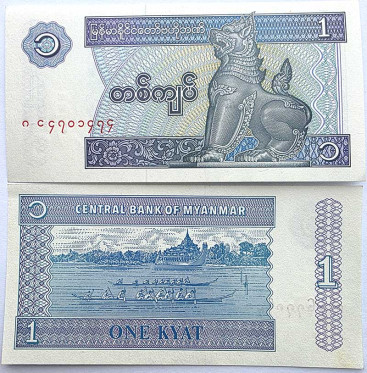 Банкнота 1 кьят - Мьянма, 1996 год, UNC