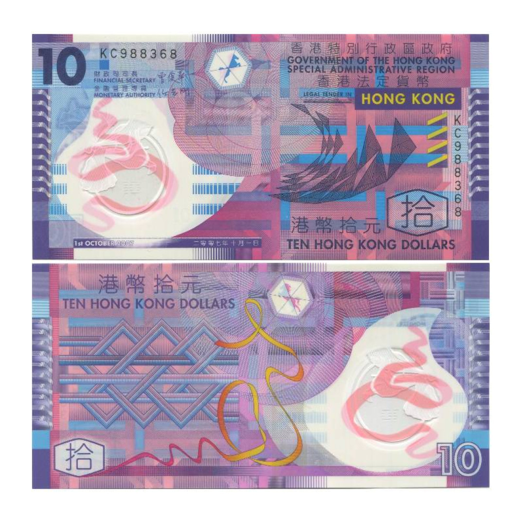 Полимерная банкнота 10 долларов - Гонконг, 2007 год, UNC