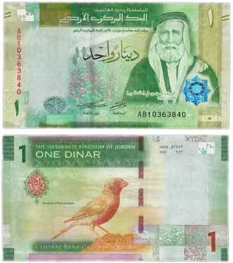 Банкнота 1 динар - Иордания, 2022 год, UNC