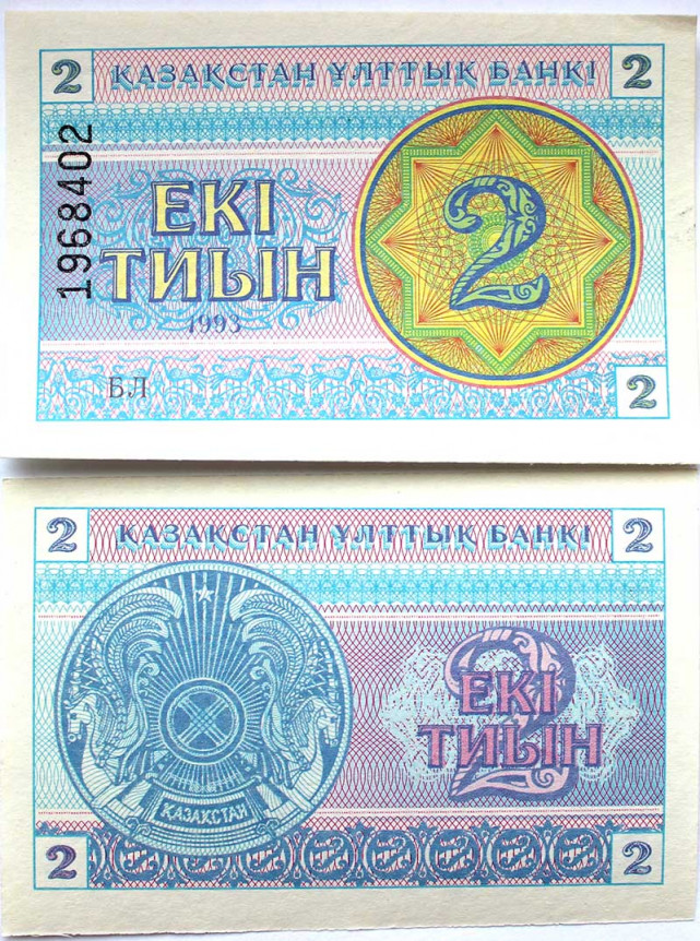 Банкнота 2 тыйын - Казахстан, 1993 год, UNC