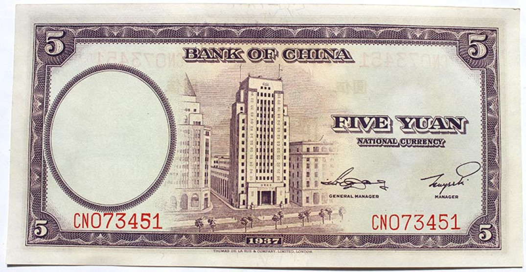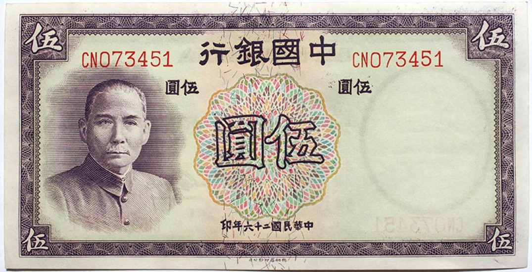 Банкнота 5 юаней - Китай, 1937 год, UNC
