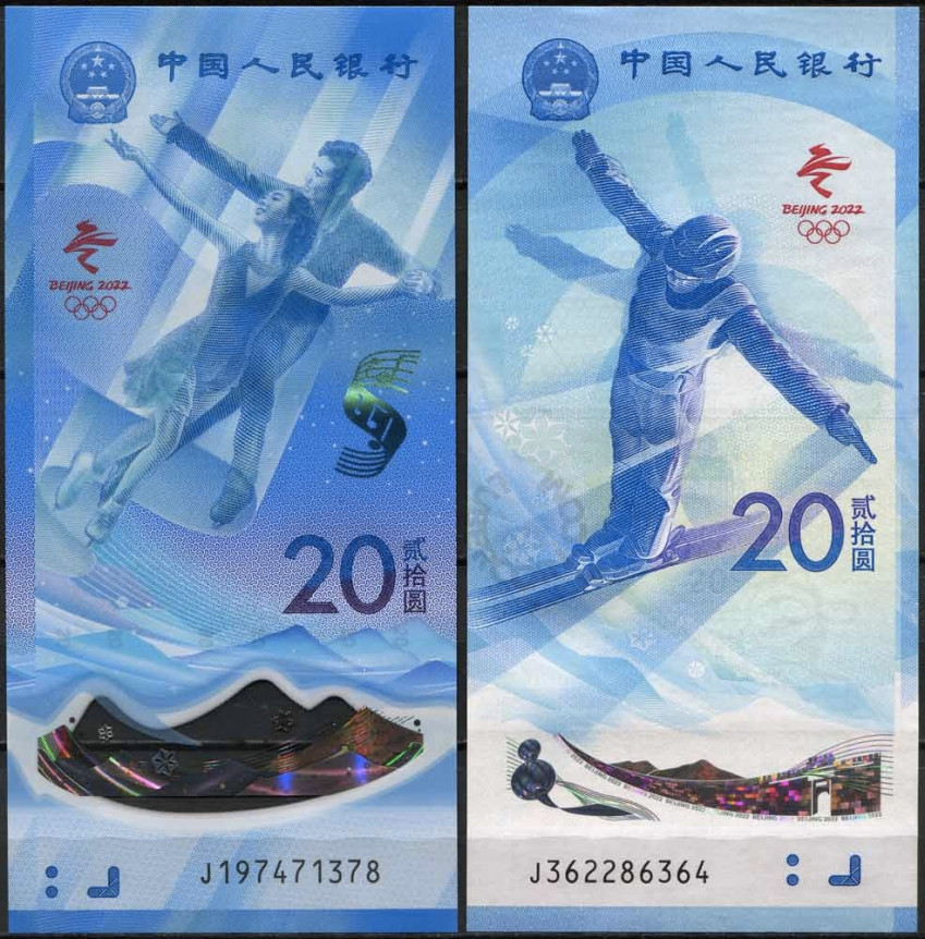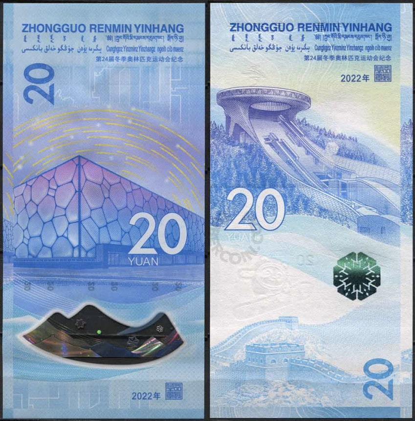 Пара банкнот - 20 юаней - Олимпиада в Китае. 2022 год, UNC