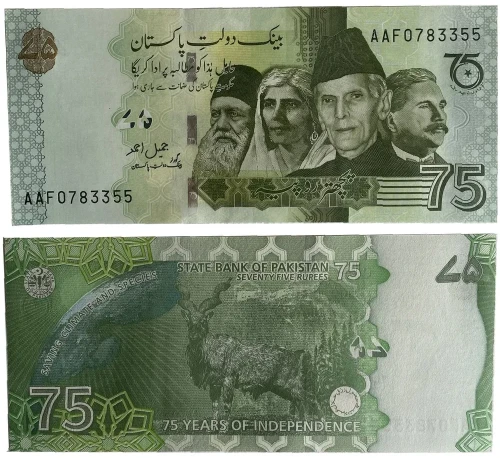 Банкнота 75 рупий - 75 лет Независимости, Пакистан, 2022 год, UNC