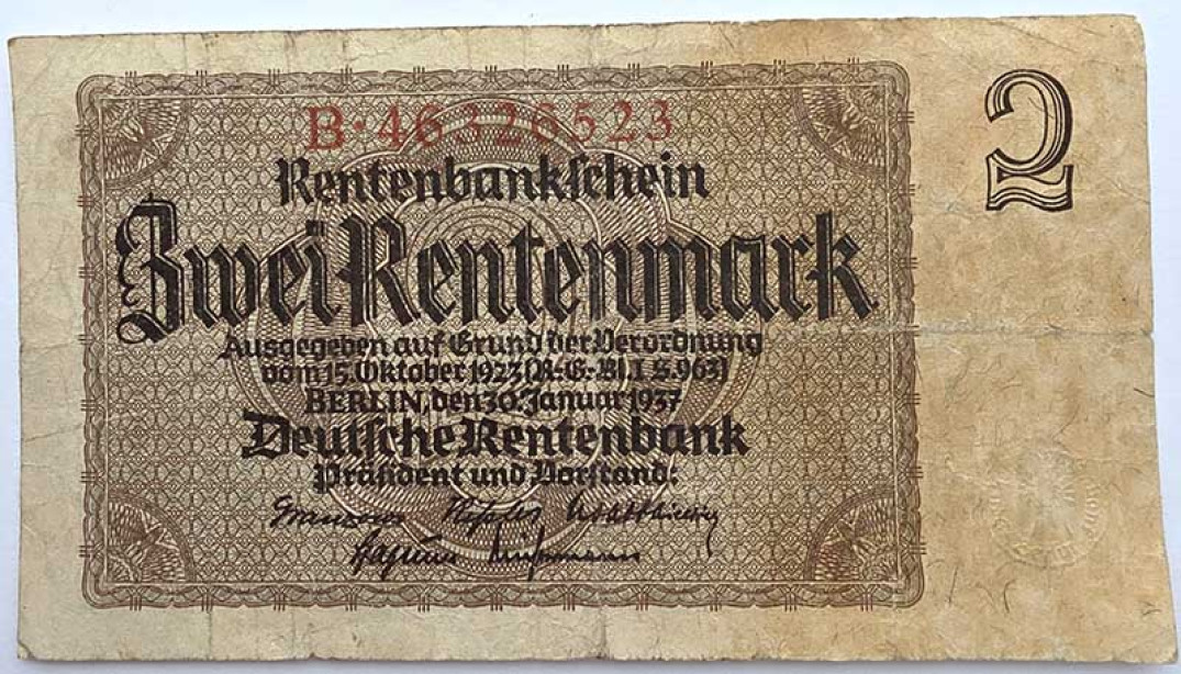 Банкнота 2 рентенмарки - Германия, 1937 год