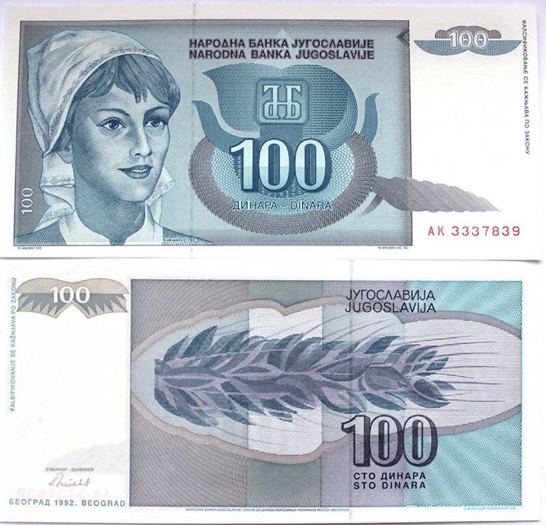 Банкнота 100 динар - Югославия, 1992 год, UNC