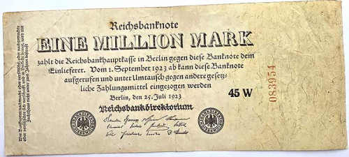 Банкнота миллион марок - Германия, 1923 год