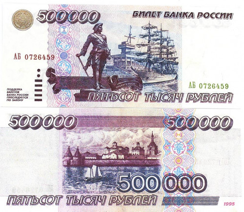 Банкнота 500000 рублей 1995 года, копия с водяными знаками