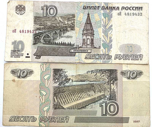 Банкнота 10 рублей 1997 год, модификация 2001 год