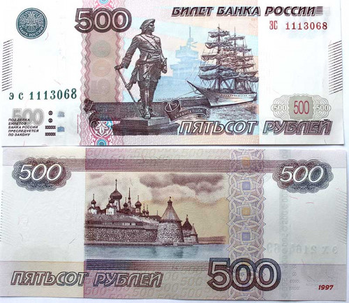 Банкнота 500 рублей 1997 год, модификация 2010 год, UNC