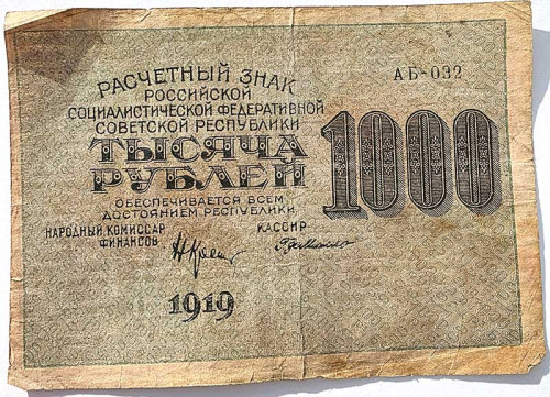 Банкнота 1000 рублей 1919 год