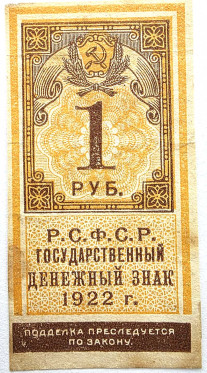 Банкнота 1 рубль 1922 год, денежный знак