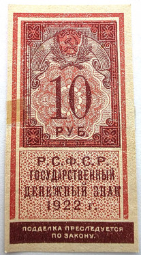 Банкнота 10 рублей 1922 год, денежный знак