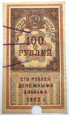 Банкнота 100 рублей 1922 год, денежный знак