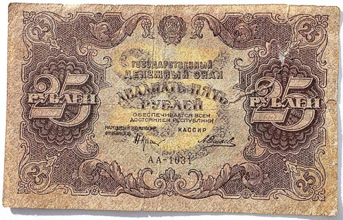 Банкнота 25 рублей 1922 год, денежный знак