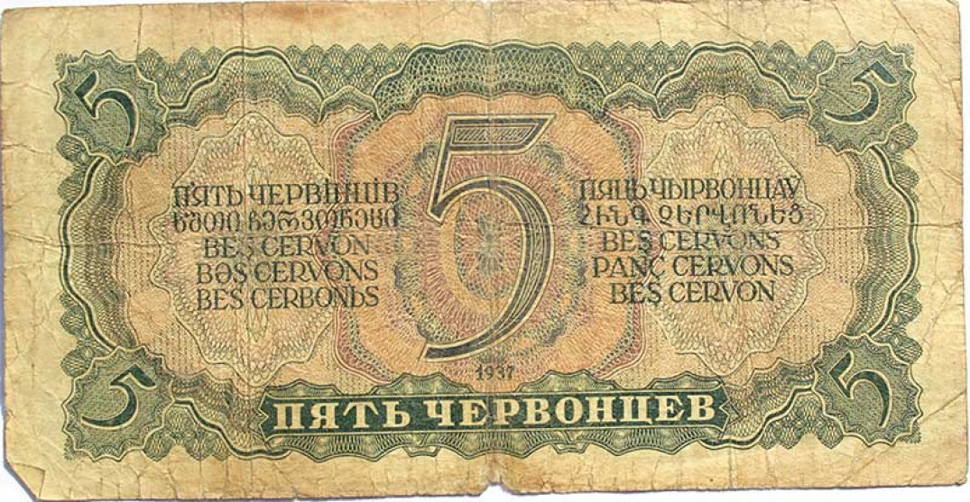 Банкнота 5 червонцев 1937 год