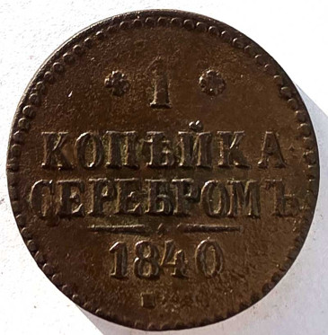 1 копейка серебром 1840 год спм