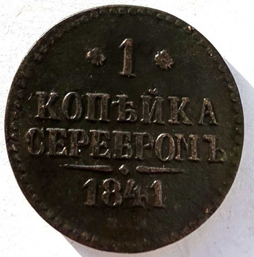1 копейка серебром 1841 год спм