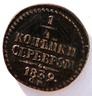 1/4 копейки серебром 1839 год см