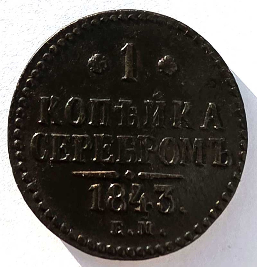1 копейка серебром 1843 год ем