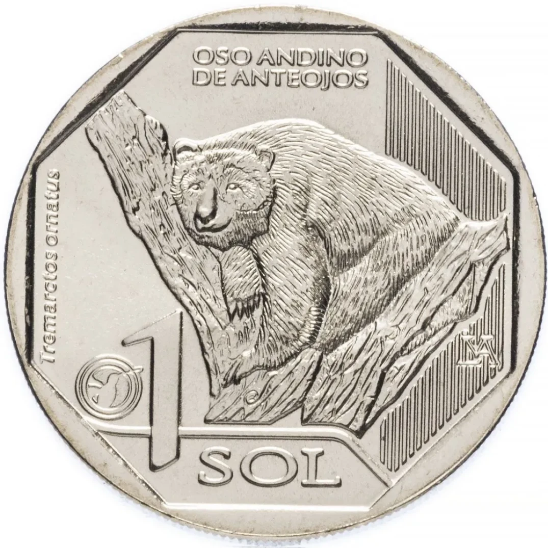1 соль - Очковый медведь, Перу, 2017 год, UNC