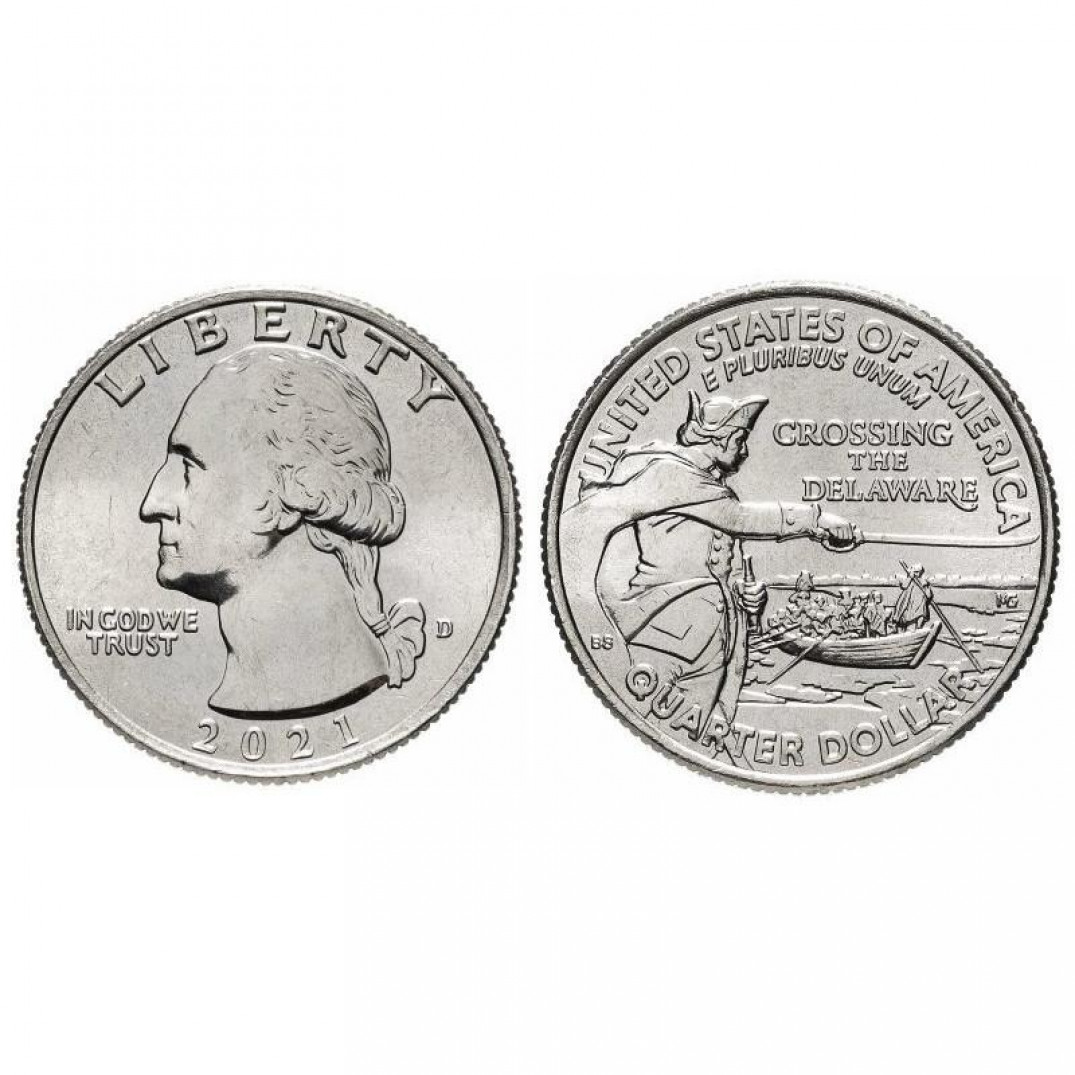 25 центов - Джордж Вашингтон пересекает реку Делавэр, США, 2021 год, двор D
