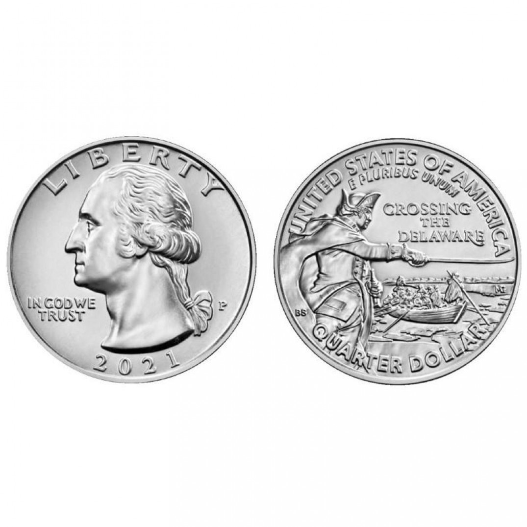 25 центов - Джордж Вашингтон пересекает реку Делавэр, США, 2021 год, двор P