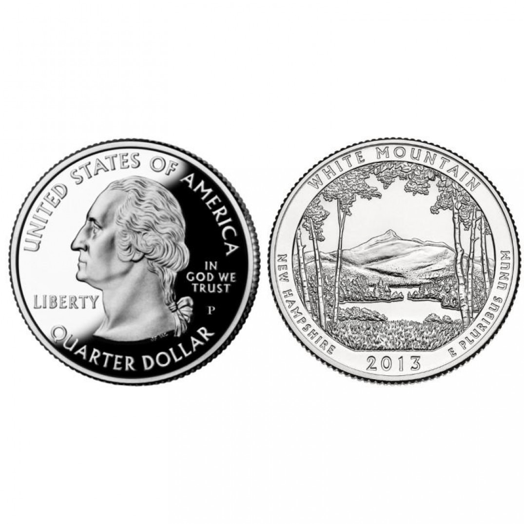 25 центов 2013 год. Национальный парк № 16 Национальный лес Белая гора (Нью-Гэмпшир)
