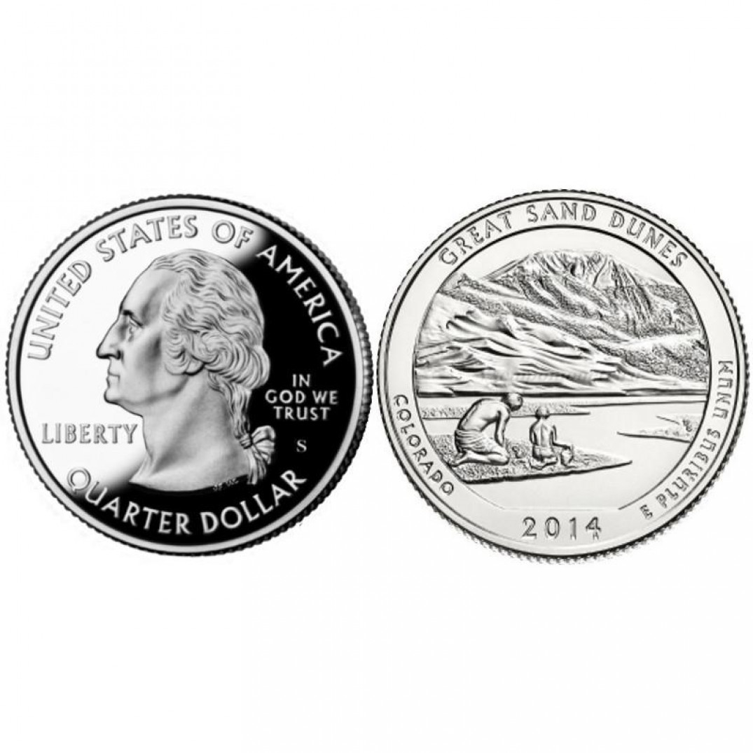 25 центов 2014 год. Национальный парк № 24 Грейт-Санд-Дьюнс (Колорадо)