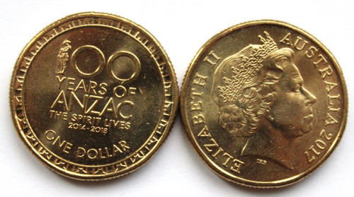 1 доллар - 100 лет героям событий Анзас, Австралия, 2017 год, UNC