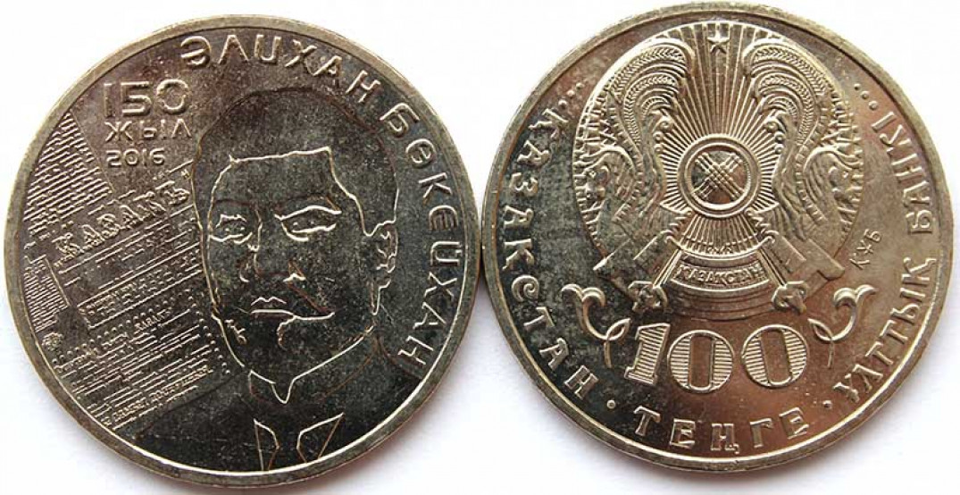 100 тенге - 150 лет со дня рождения Алихана Букейханова, Казахстан, 2016 год