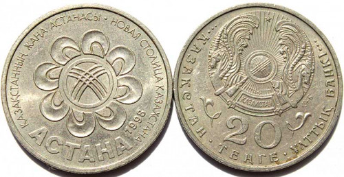 20 тенге - Презентация Астаны как столицы Казахстана, Казахстан, 1998 год