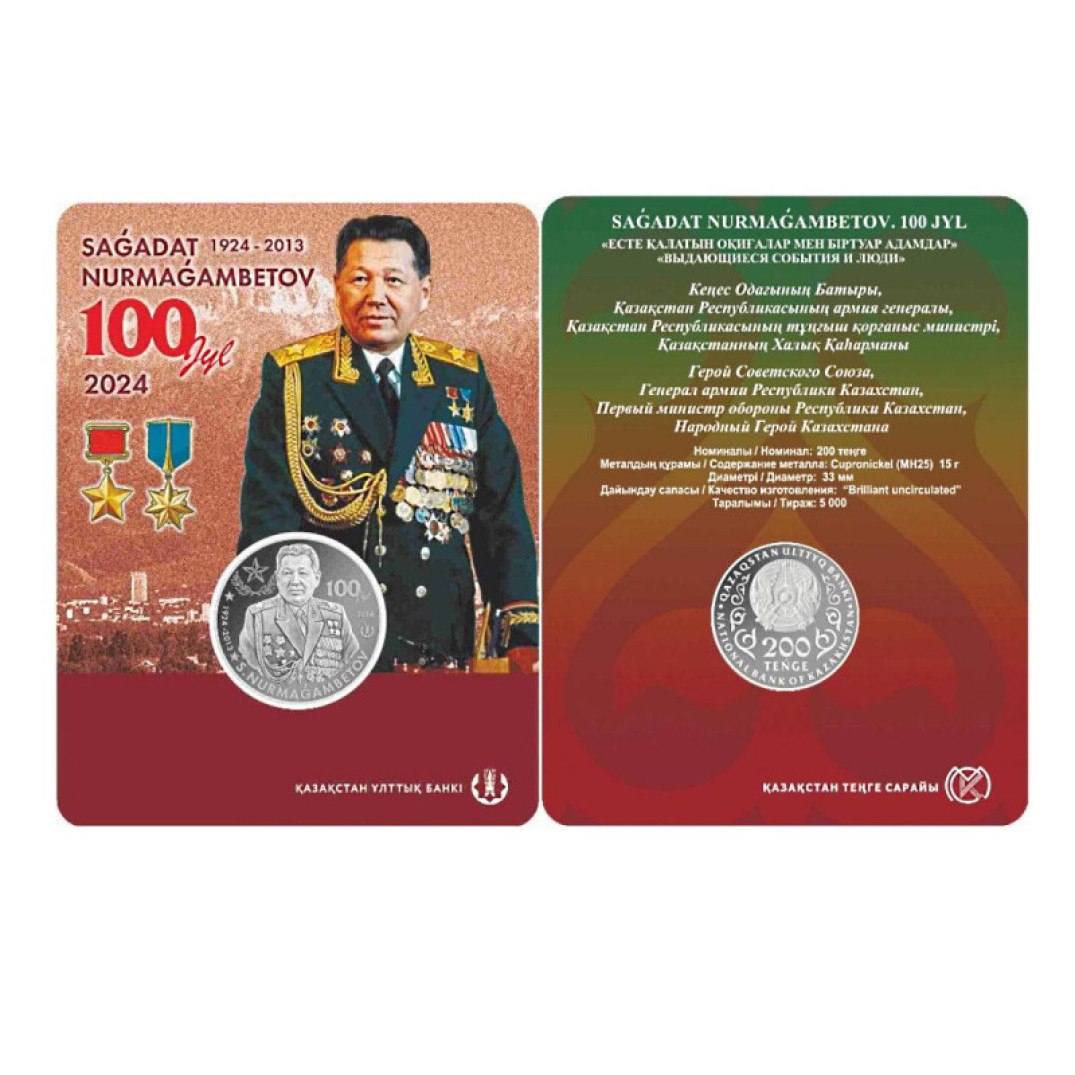 200 тенге - 100 лет со дня рождения Сагадата Нурмагамбетова, Казахстан, 2024 год, в блистере