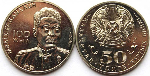 50 тенге - 100 лет со дня рождения Малика Габдуллина, Казахстан, 2015 год
