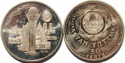 50 тенге - 10 лет столице - городу Астана, Казахстан, 2008 год