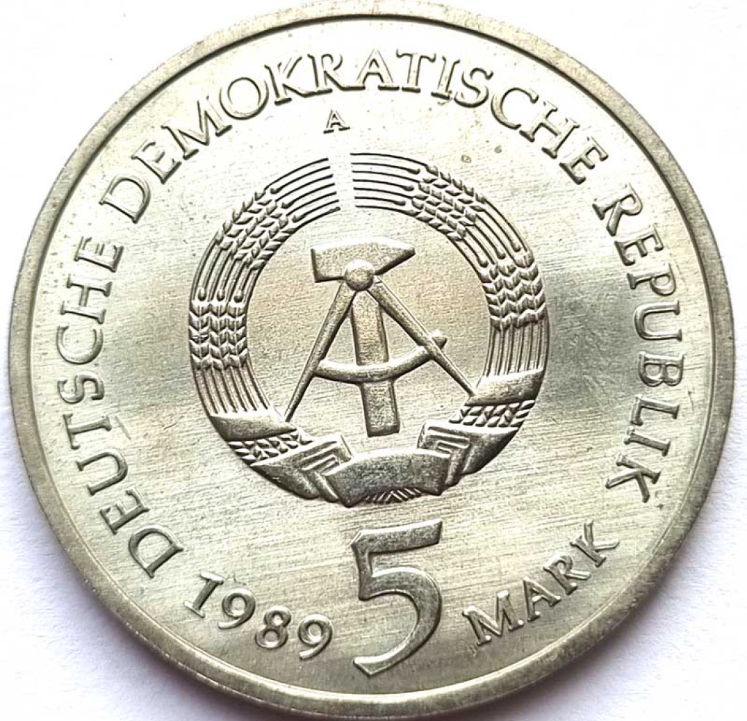 5 марок - 500 лет со дня рождения Томаса Мюнцера, Церковь Св. Марии в Мюльхаузен, Германия, 1989 год