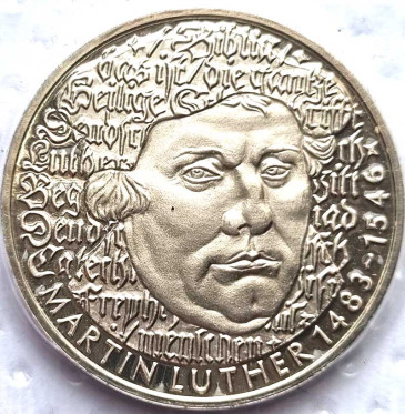 5 марок - 500 лет со дня рождения Мартина Лютера, Германия, 1983 год, в запайке