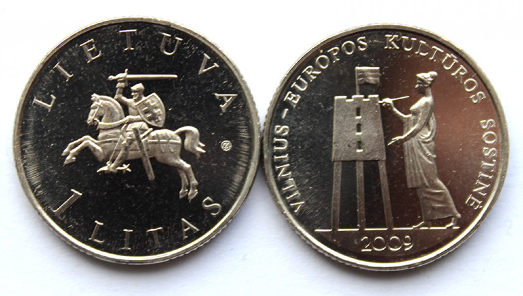 1 лит - Вильнюс - культурная столица, Литва, 2009 год