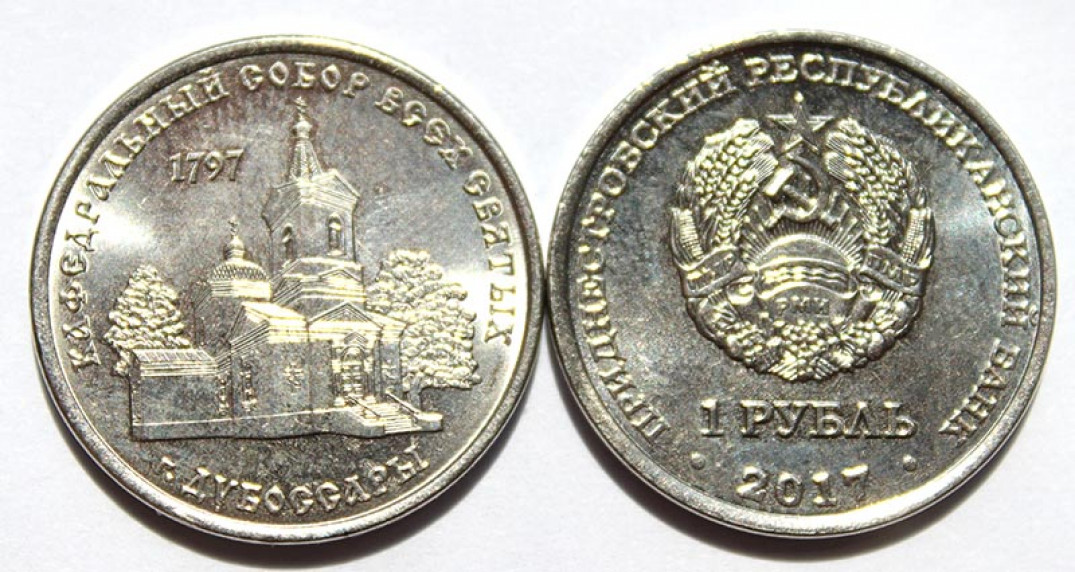 1 рубль - Кафедральный собор всех святых в Дубоссарах, Приднестровье, 2017 год