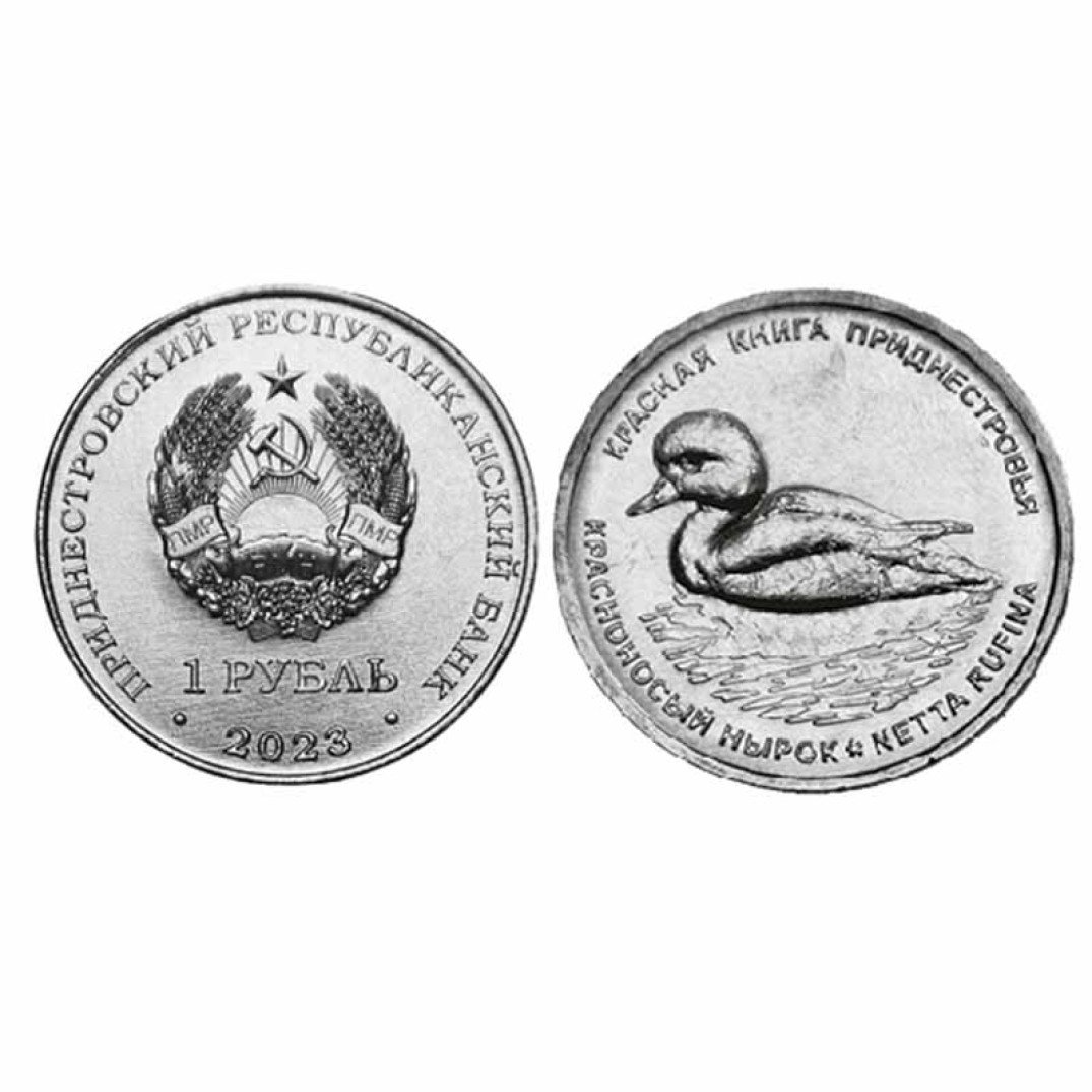 1 рубль - Красноносый нырок, Приднестровье, 2023 год