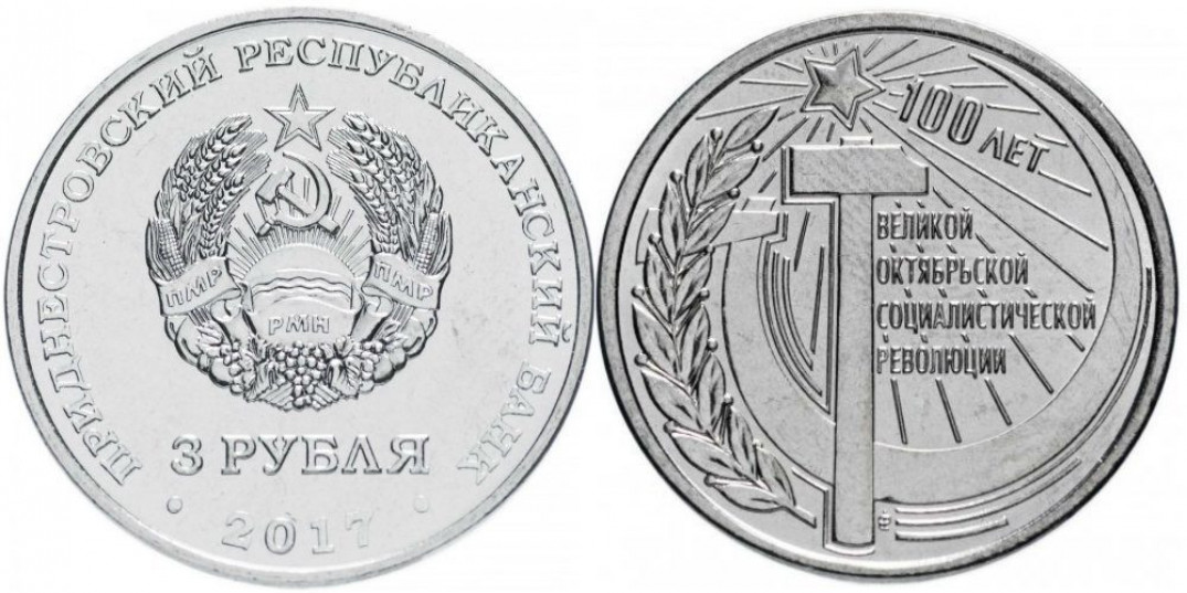 3 рубля - 100 лет Октябрьской революции, Приднестровье, 2017 год