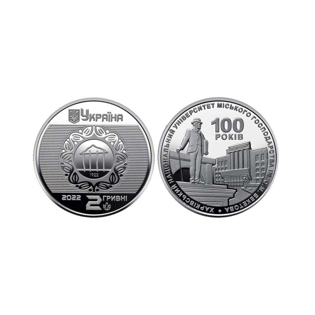 2 гривны - 100 лет Харьковскому национальному университету, Украина, 2022 год