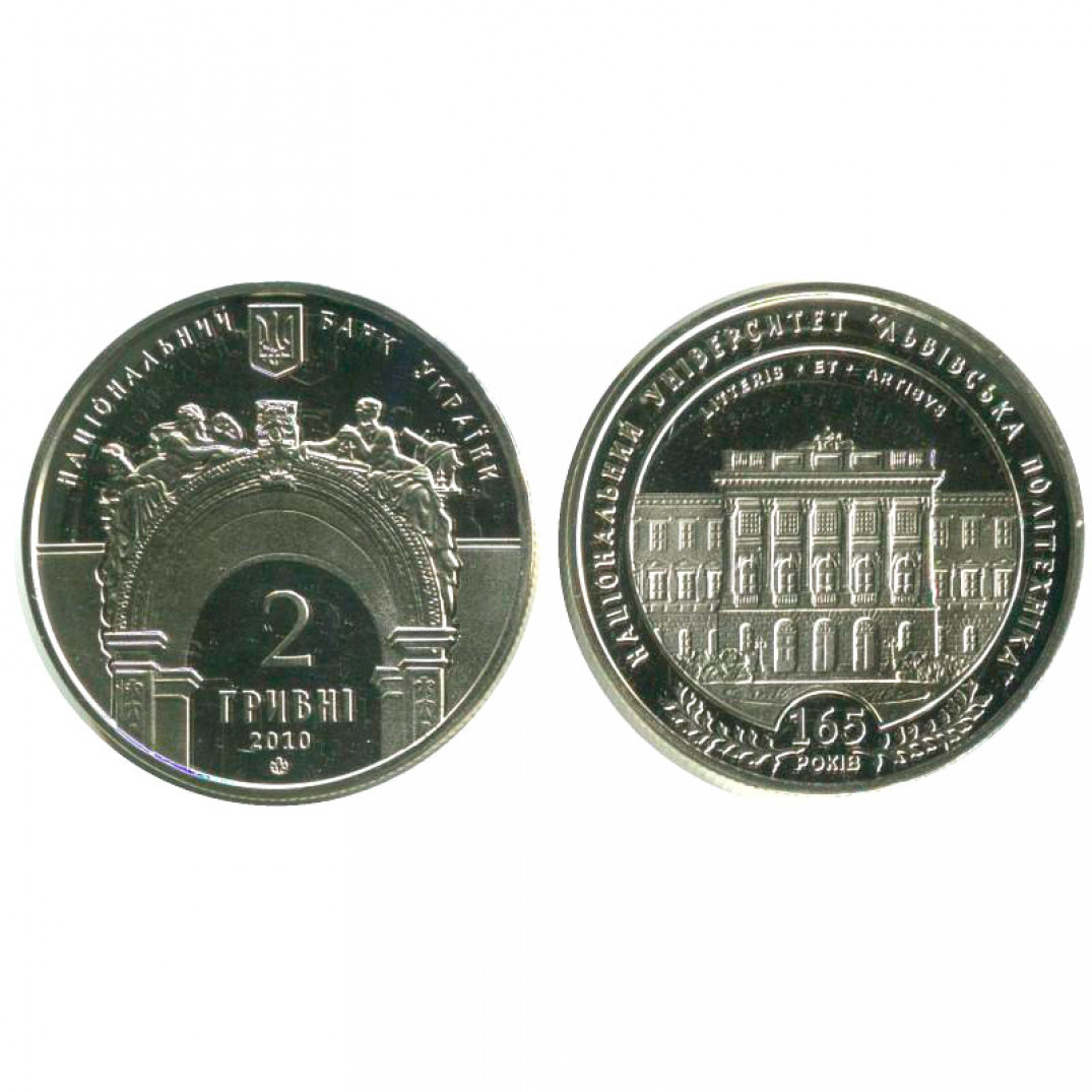 2 гривны - 165 лет Национальному университету `Львовская политехника`,Украина, 2010 год