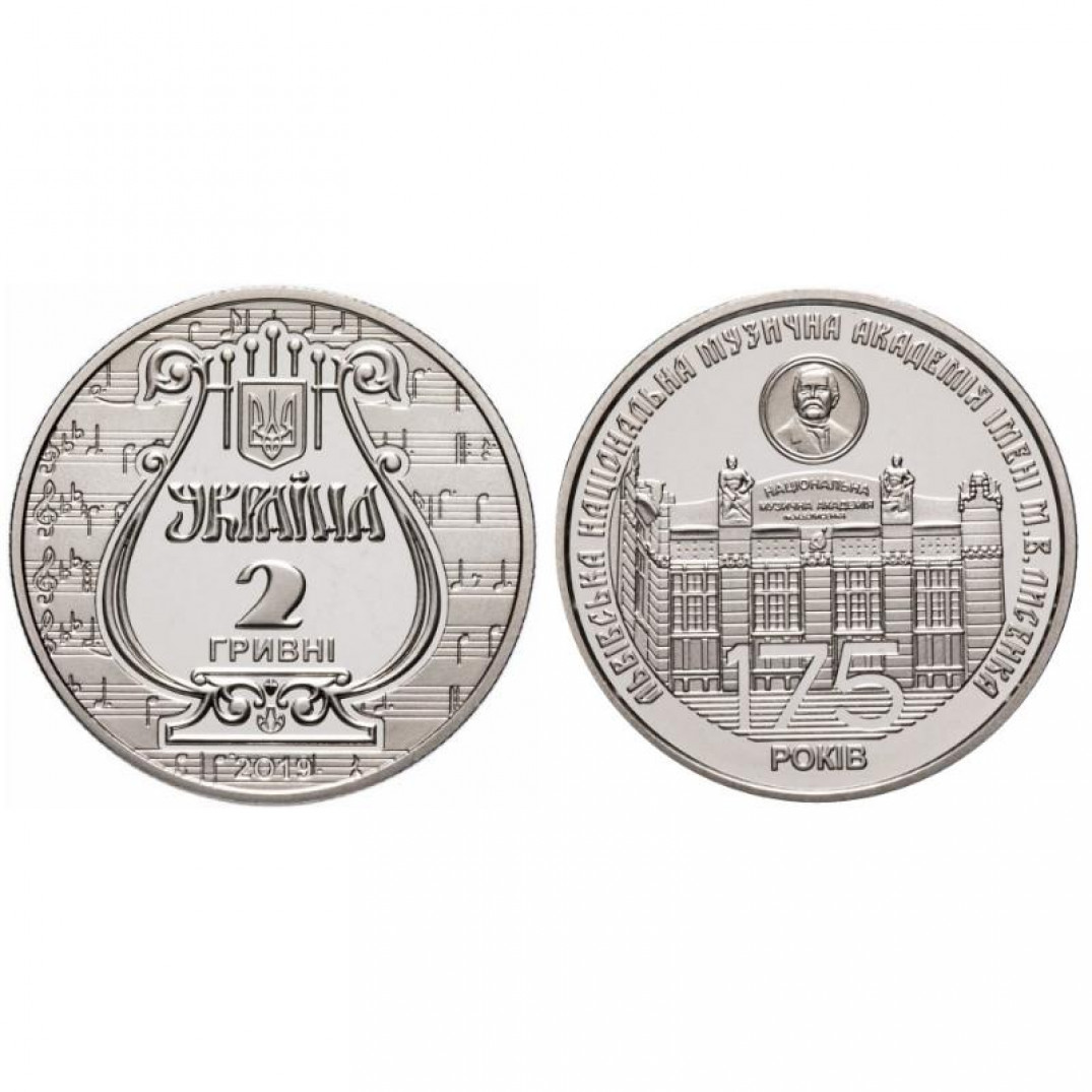 2 гривны - 175 лет со времени основания Львовской национальной музыкальной академии имени Н.В. Лысенко, Украина, 2019 год